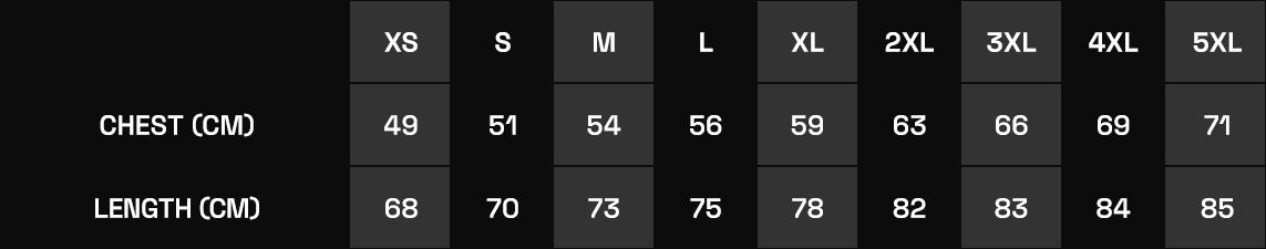 CHEST ON SIZE CHART IS MEASURED LAID FLAT (HALF SIZE), DOUBLE FOR FULL CIRCUMFRENCE